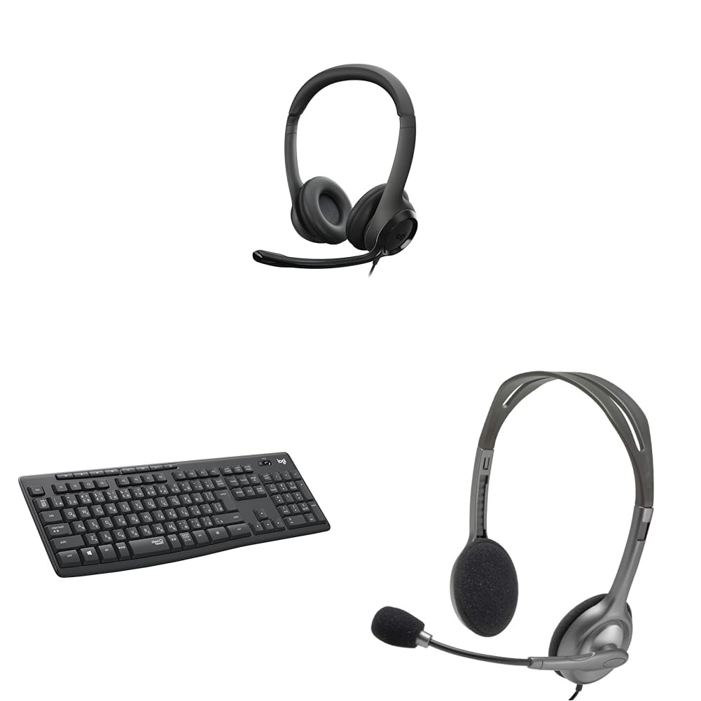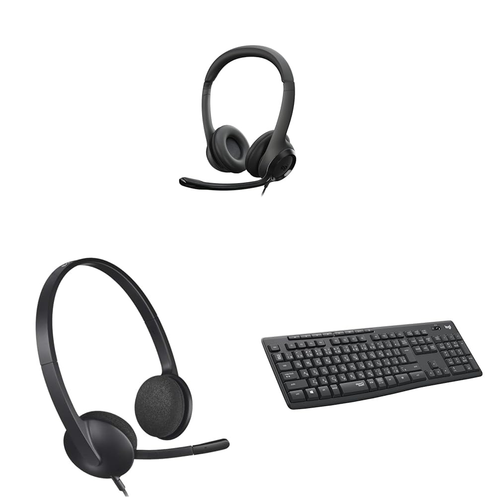 【세트 구매】【Amazon.co.jp 한정】 로지텍 헤드셋 H340r 노이즈 캔슬링 USB 블랙 국내 정품 [Amazon.co.jp 한정 배경화면 다운로드 포함] + 무선 키보드 K295GP K295 그라파이트 국내 정품 + 【Amazon.co.jp 한정】헤드셋 H111r 3.5mm 연결 노이즈 캔슬링 국내 정품 2년 제조사 보증