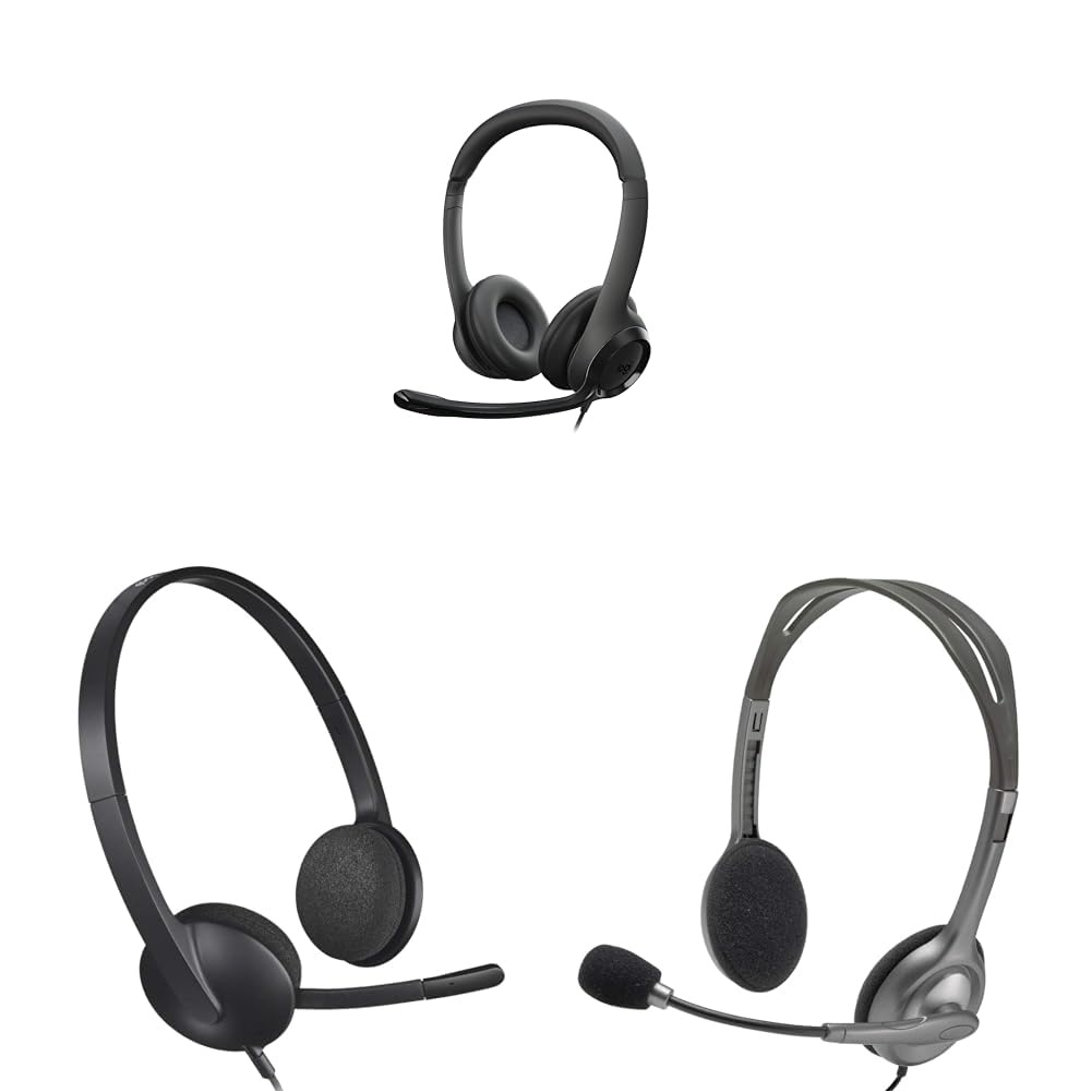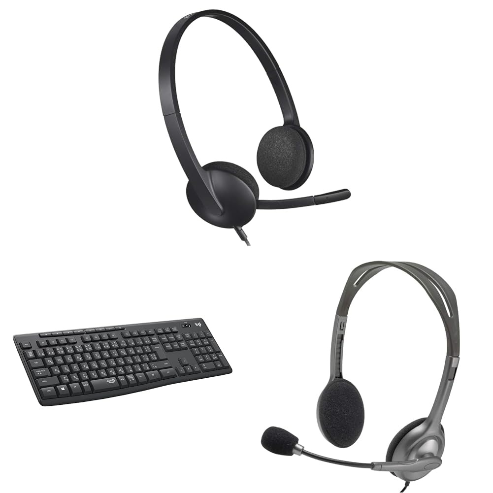 【세트 구매】로지텍 헤드셋 노이즈 캔슬링 H390r 블랙 국내정품 + 【Amazon.co.jp 한정】 헤드셋 H340r 노이즈 캔슬링 USB 블랙 국내정품 [Amazon.co.jp 한정 배경화면 다운로드 포함] + 【Amazon.co.jp 한정】 헤드셋 H111r 스테레오 3.5mm 연결 노이즈 캔슬링 국내정품